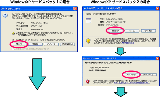| <ダウンロード> 1.ダウンロードは、下の DownLoad ボタンをクリックすると始まります。 2.クリックすると、下のようなセキュリティの警告画面が1〜2回表示されます。 ![]() 3.〔開く〕あるいは、〔実行〕ボタンをクリックしてください。 |