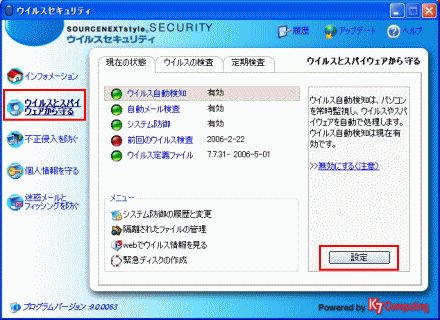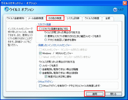 恒久的に表示されないようにするには、以下の通り、ウィルスセキュリティ